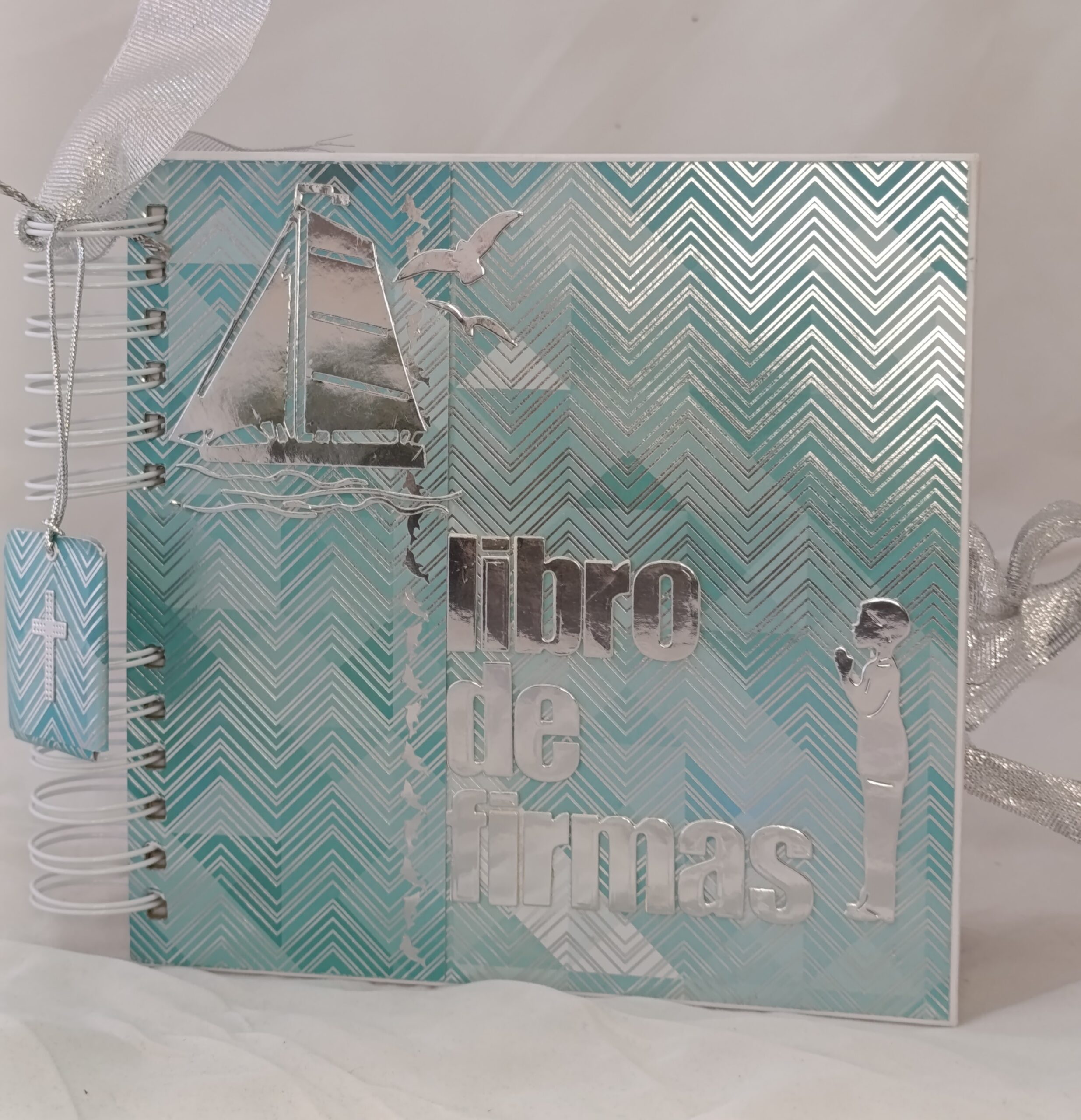 Libro de firmas con 2o hojas para firmas y 4 para fotos. Motivo marinero.